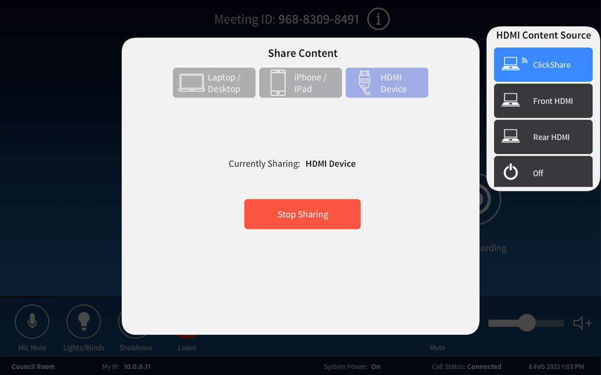 An intuitive Zoom centric control system control GUI was developed for the project — ensuring the system was sufficiently user-friendly and easy to navigate across all touchpoints.